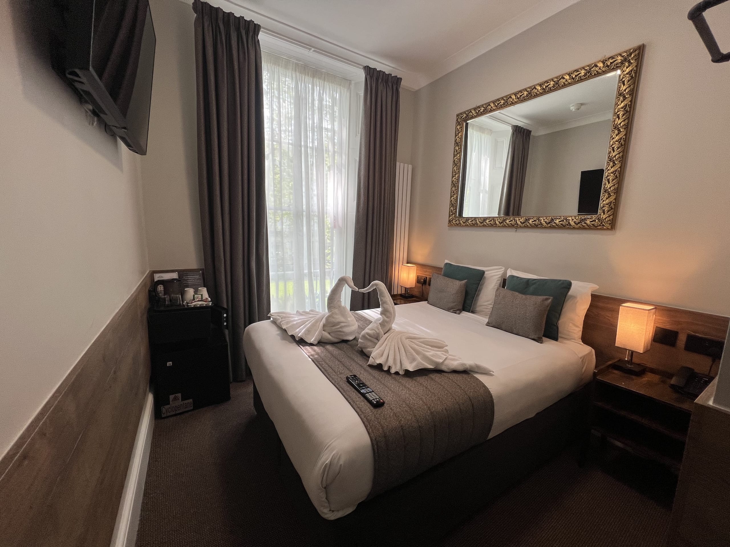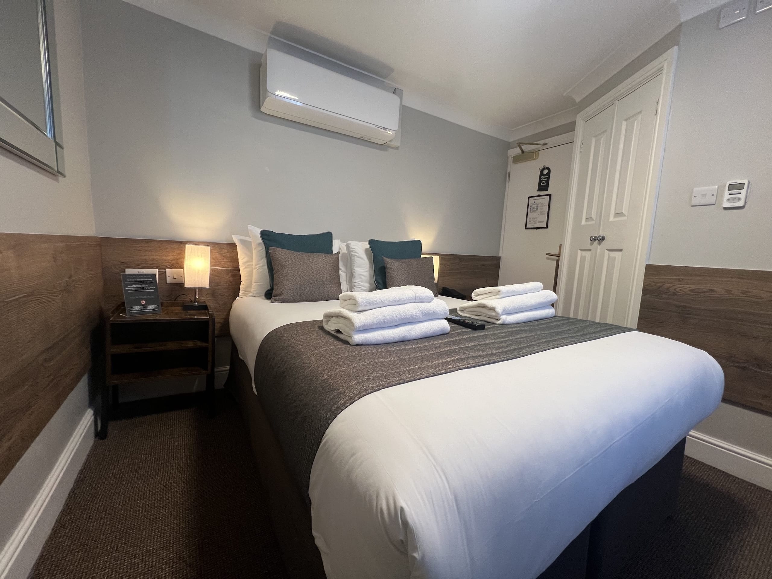 Our Compact Double rooms offer a charming, intimate space designed especially for couples or friends travelling together. Each room features a comfortable double bed, private bathroom with a sleek modern shower, and essential amenities including complimentary high-speed Wi-Fi, flat-screen TV, electric kettle for tea and coffee, personal safe, hairdryer, iron with ironing facilities, and individually controlled heating. Compact yet thoughtfully arranged, these rooms provide a relaxing atmosphere ideal for short stays or city breaks.