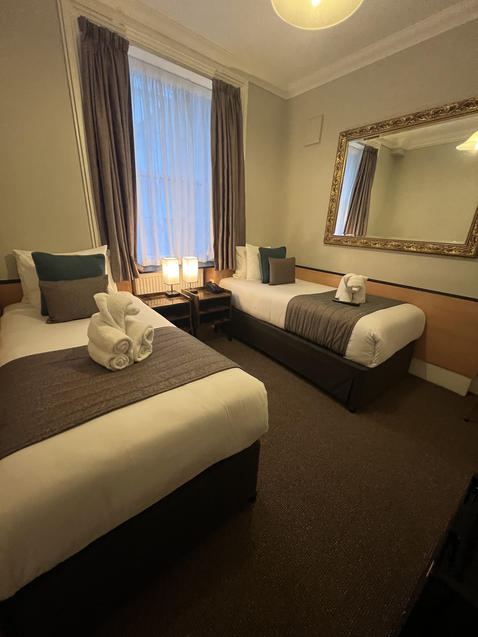 Our Compact Twin Ensuite rooms are ideal for friends, colleagues, or siblings travelling together. Designed for efficient use of space without sacrificing comfort, these rooms feature two cosy single beds and a private bathroom with a sleek shower. Each room is equipped with thoughtful amenities including complimentary high-speed Wi-Fi, a flat-screen TV, electric kettle, tea and coffee making facilities, in-room safe, hairdryer, iron, ironing board, and heating control. Perfect for short stays or city adventures with a travel companion.