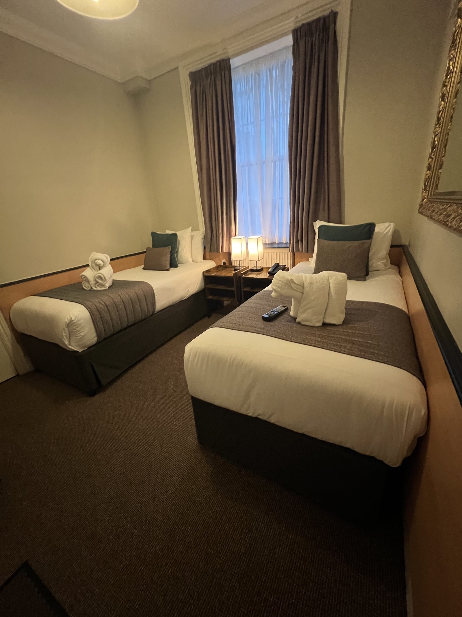 Our Compact Twin Ensuite rooms are ideal for friends, colleagues, or siblings travelling together. Designed for efficient use of space without sacrificing comfort, these rooms feature two cosy single beds and a private bathroom with a sleek shower. Each room is equipped with thoughtful amenities including complimentary high-speed Wi-Fi, a flat-screen TV, electric kettle, tea and coffee making facilities, in-room safe, hairdryer, iron, ironing board, and heating control. Perfect for short stays or city adventures with a travel companion.